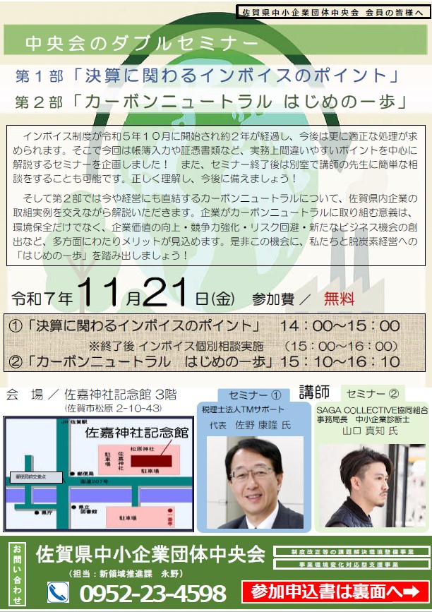 「インボイス制度」並びに「カーボンニュートラル」説明セミナーについてのお知らせです。