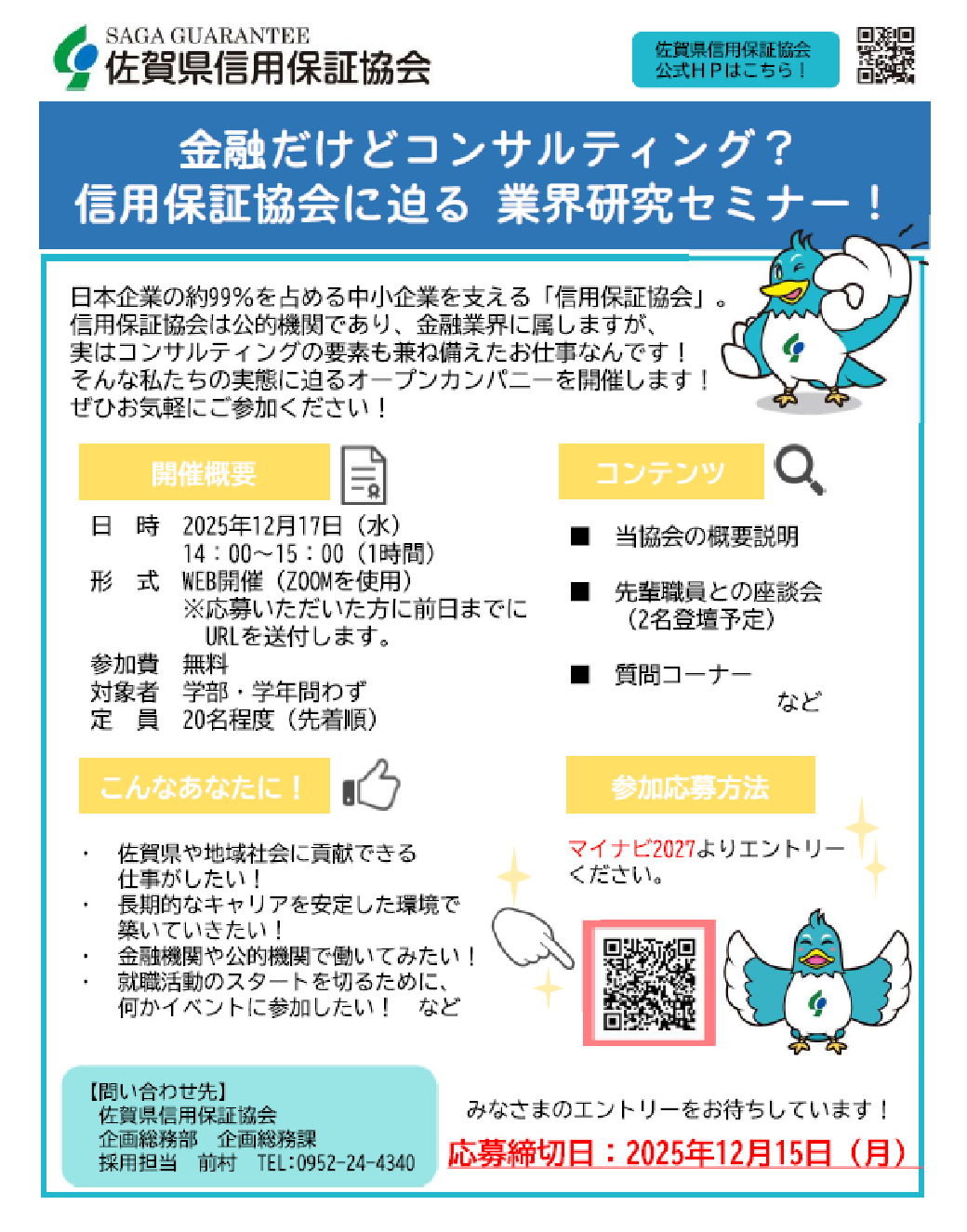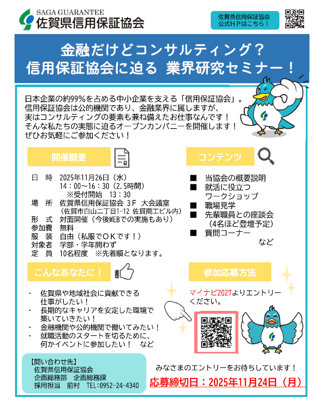 2025年11月より大学生・大学院生を対象とした佐賀県信用保証協会のオープン・カンパニーを開催します。